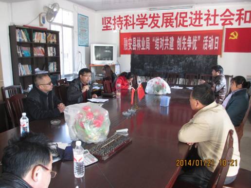 为更好的做好联系乡镇帮扶村的帮扶工作,bet365足球网党组书记傅为民同志、副局长覃维同志等一行于2014年1月21日前往板榄镇门楼村、里鸟村进行送慰问送关怀活动。林业局领导亲切的慰问了村委同志工作状况,切实关心了村里需要帮扶的项目和村民的困难问题,同时传达了2013年融安林业工作方面的成绩,并让村委帮忙向村民宣传凭证采伐、凭证野外用火等法律法规,并希望村委能在春节节日期间,帮忙做好纠纷林地村民的安抚工作,维护好节假日期间的安全工作。这次慰问共送去慰问金2200元,慰问门楼、里鸟村委共11人。